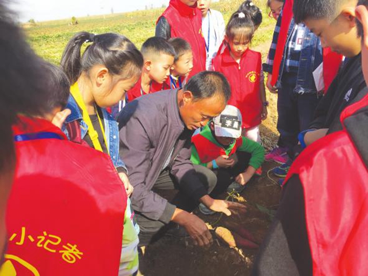 “沒想到挖紅薯這么難!”小記者們紛紛感嘆道,不過隨著越來越有經(jīng)驗(yàn),他們挖出的紅薯個(gè)頭又大又完整。“看,我這紅薯叫‘相依為命’!”小記者劉森宇與弟弟劉森皓合力挖出了一個(gè)巨型紅薯,高興地直跳。