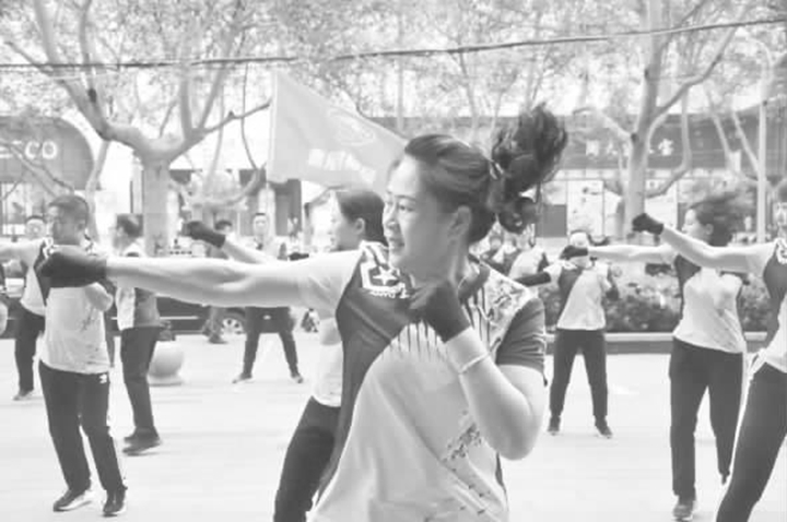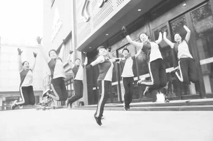 記者看到,德愛健身團隊員們的年齡不一,但是跳起來個個精神百倍。