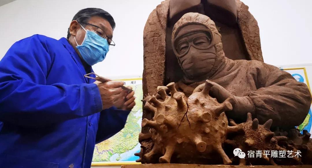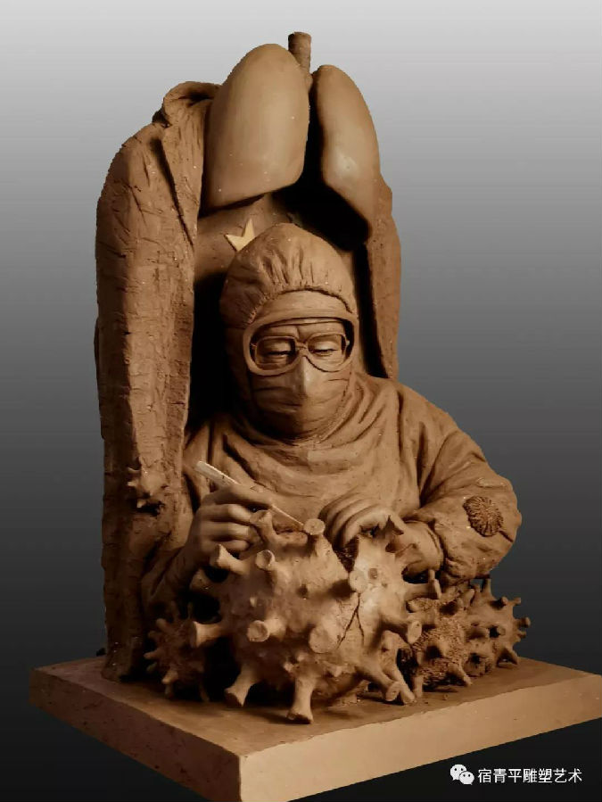 2020年2月初,面對新型肺炎的嚴峻疫情,宿青平滿懷對人民健康的關切和對白衣戰士的崇敬之情,臨疫創作《醫者無懼》主題雕塑,成為中國雕塑家緊隨時代,關注民生,助力抗疫戰斗的第一件雕塑作品。
