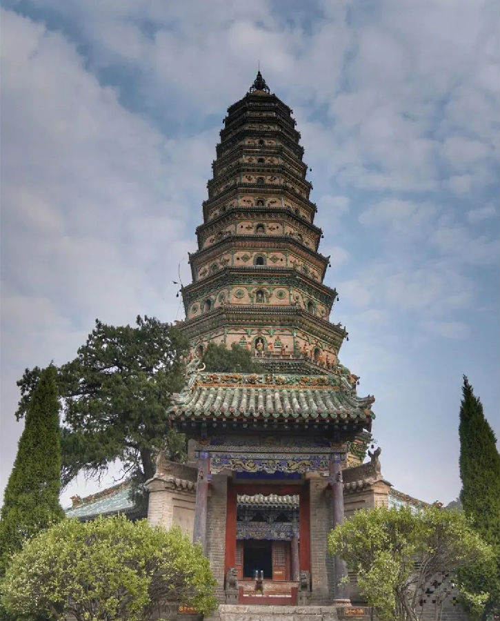 看點(diǎn):“一塔玲瓏駕碧空,滿山翠柏起秋風(fēng)。”每逢紅日高照,位于洪洞縣城東北霍山南麓的此塔金碧輝煌,仿佛美麗的彩虹,故名“飛虹塔”,也是佛界公認(rèn)最美麗的“浮圖”。始建于漢代,現(xiàn)存為明嘉靖六年(公元1527年)重修,是我國(guó)現(xiàn)存最完整的大型琉璃古塔。平面八角形,13級(jí),高47.31米,通體用琉璃瓦裝飾而成,層層皆有琉璃出檐。下三層尤其精致,有飛檐凌空下的斗拱,制作精巧的蓮花椅柱,上刻各種圖案,佛像凝重肅穆,菩薩慈祥可人,和尚憨態(tài)可掬,力士威風(fēng)抖擻,童子天真活潑,造型生動(dòng)逼真,色澤艷麗奪目。