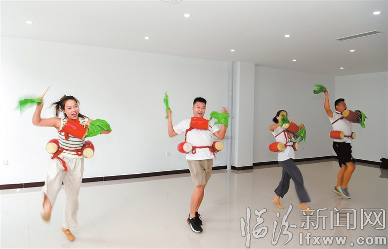 臨汾新聞網訊 近日,翼城花鼓傳承人肖軍正在和隊員排練花鼓。