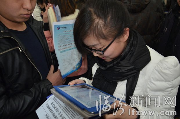 在求職者人群中大學生賈琳無疑是最有回頭率的一人,她捧著ipad,悠閑地看著剛剛拍攝的招聘展位平面圖,然后直奔目標展區。