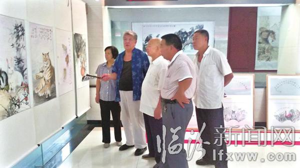臨汾新聞網訊 8月16日,市群眾藝術館人頭攢動,為期一周的王英銘十二生肖專題展開展了。此次畫展由臨汾市文聯、市群藝館主辦,市工藝美術家協會、市老年書畫家協會、市頡苑書畫研究院承辦。在王英銘參展的63幅作品中,尤以十二生肖圖搶眼。這位被譽為從黃河古道帶著滿身黃土走來的藝術家,雖年逾古稀,仍然以飽滿的激情揮毫潑墨……