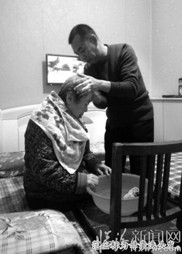 “物質上無非是好一點差一點,主要是精神上,時間越久越煎熬,那時總覺得照顧好父母,他們就會慢慢好起來,沒想到……”提起父母,范金標每每哽咽。2010年父親突發腦出血,導致半身癱瘓、臥床不起,母親2013年又患雙下肢靜脈血栓,還不慎摔倒致小腿骨折,至今不能下地行走。范金標肩上的擔子愈加沉重。范金標就這樣二十余年如一日地照顧著雙親,一日三餐親手準備,生活起居親自料理,吃藥打針親自操作,沒有過一句怨言,沒有發過一次脾氣,更多的是耐心。臥床二十余年來,父母親在他的照料下從沒長過褥瘡,身體一直康健。然而長期的操勞,使得范金標患上了高血壓,每日需要服用大量的降壓片?!叭藗兘洺I纤聫R燒香拜佛,卻不知父母親就是家中的一對活佛,他們生養我們,盡這點孝心是子女的本分?!边@份精神力量支撐著范金標走過了無數個春夏秋冬、白天黑夜。身體上的辛勞無法戰勝精神上的信仰,如今范金標已經能總結出伺候老人的一系列心得:氣墊床防褥瘡,遵醫囑藥適量,耐心細心盡孝心,勤換勤洗總干凈……