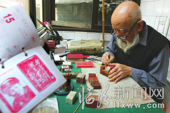 高聯民今年77歲,退休前一直在地方搞文化工作,他在6年前接觸到篆刻藝術后,便深深深迷戀上了這門藝術。