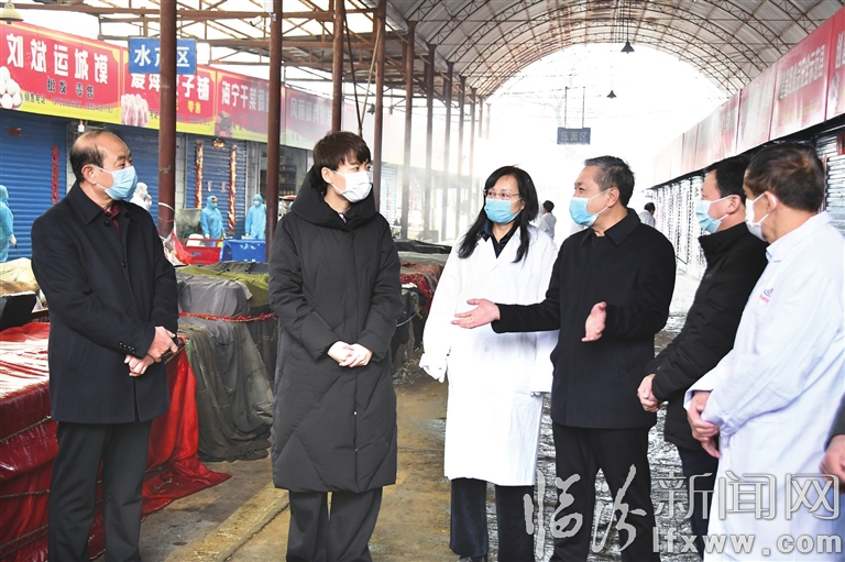 2月2日,縣委副書記、縣長劉舒華在龍崗農貿市場督導疫情防控工作。
