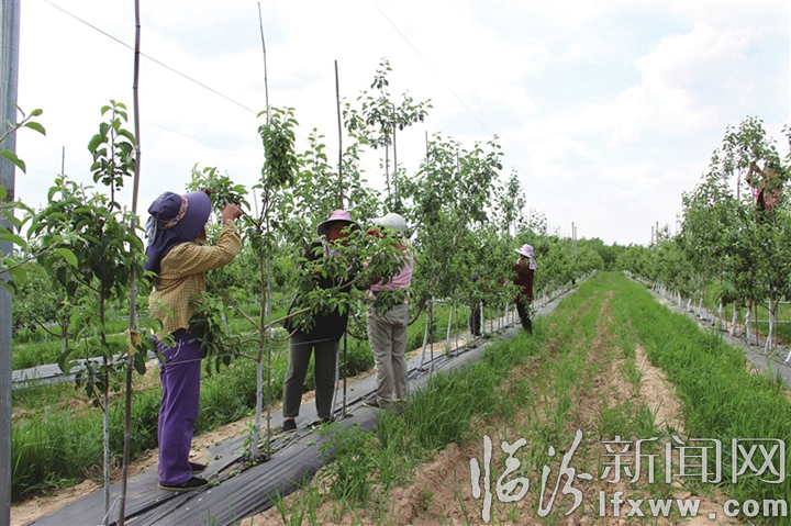 被子垣千畝矮化密植果園位于蒲縣紅道鄉太夫村委被子垣村,由蒲縣農業資源開發中心經營,共流轉全村土地600余畝,改造荒山面積400畝,總面積達1000畝,已為蒲縣果業發展探索道路,打造省力化、生態化、機械化果園,形成一套技術示范模板為建園目的。經過近四年的努力,目前果園栽植玉露香梨400畝,蘋果100畝,累計引進各類果樹品種資源95個,其中梨品種22個,蘋果品種39個,形成以玉露香梨和懶漢蘋果為主板,其他多個品種為點綴的現代果業格局。為了創建生態果園、安全果園典型,該園堅持不多上化肥不打化學農藥,采用人工抓蟲,生態物理方法誘蟲,安裝殺蟲燈,懸掛黃板、使用低毒低殘留生物農藥防治病蟲害,實行果樹行間生草、機械割草,秋季開溝增施內蒙古錫林郭勒盟純羊糞提高土壤有機質含量,栽植第二年就開始掛果。今年部分梨、蘋果、桃、山楂、櫻桃等水果進入初果期。圖為被子垣千畝矮化密植果園,果農正在進行疏果作業。