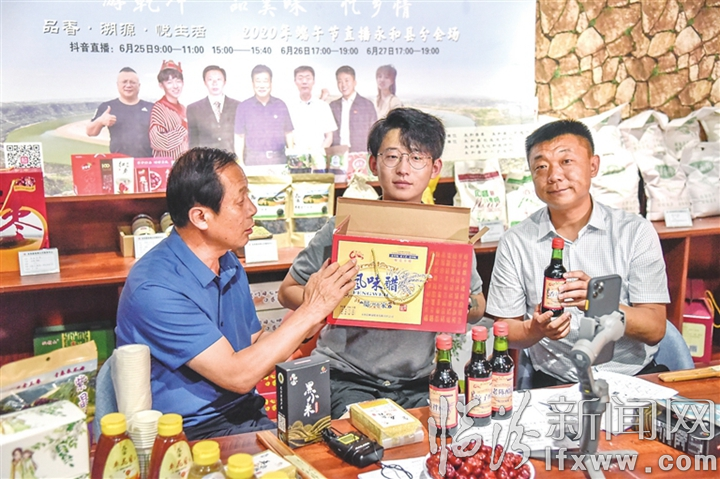 6月25日,乾坤灣景區,縣委副書記、縣長范洋平與網紅主播山西小胖,賣力推銷永和優特農副產品。