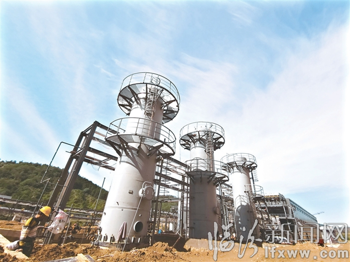 建設中的豐百LNG液化調峰站與碧水藍天相映成趣