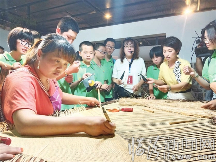 在唐人居民居藝術非遺文化研學營地觀看藤編藝術。