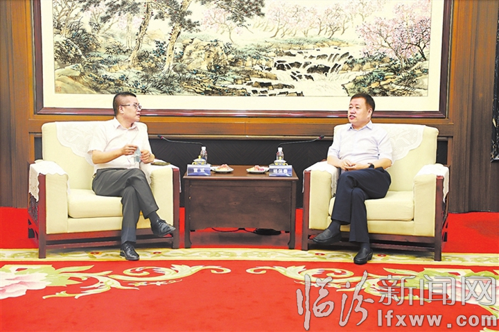曲沃縣委書記楊保春與中國(guó)農(nóng)產(chǎn)品流通經(jīng)紀(jì)人協(xié)會(huì)副會(huì)長(zhǎng)、秘書長(zhǎng)雷斌一行座談