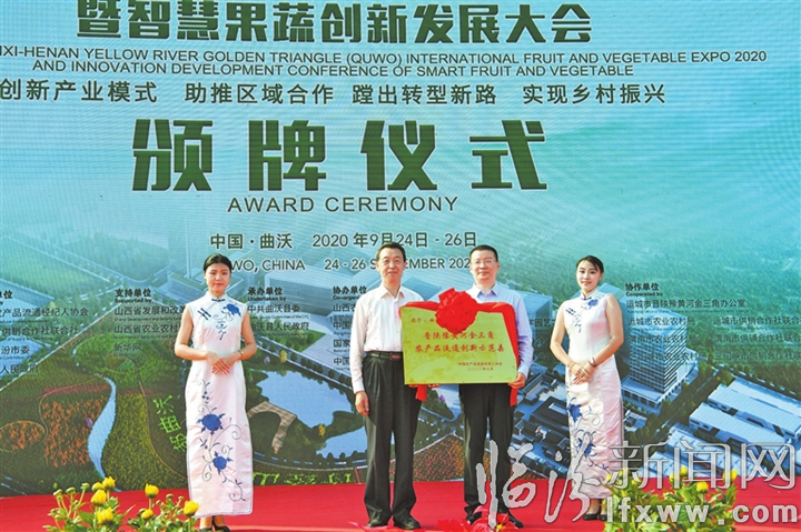 中國農產品流通經濟人協會授予曲沃“晉陜豫黃河金三角農產品流通創新示范縣”。記者 魏華 攝
