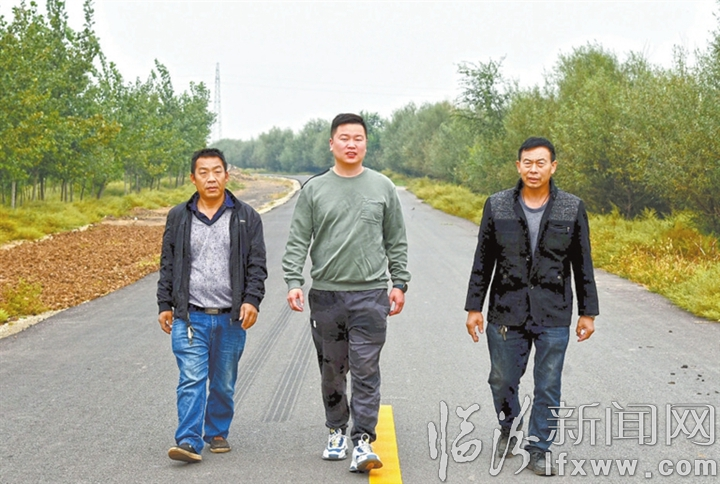 黃睿和古縣村“兩委”干部查看油路鋪設情況