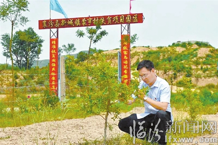 在蒙亨村扶貧產業園,王斌查看皂角樹長勢