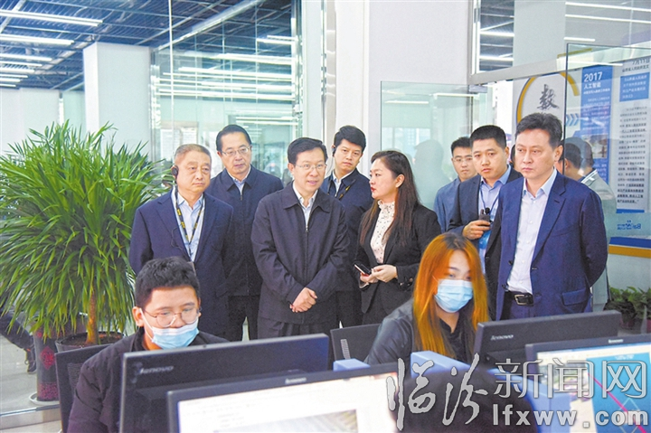 市委書記董一兵,市委副書記、市長李云峰等市領導在山西鉑安電子科技有限公司百度人工智能基礎數據產業園現場觀摩。 郝東博 攝