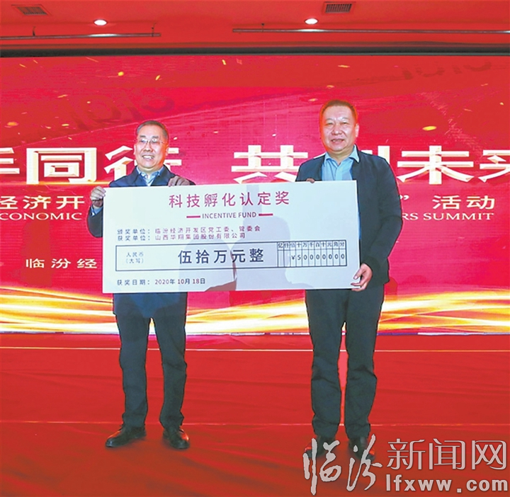 “企業家日”活動中,臨汾經濟開發區為山西華翔集團股份有限公司頒發了“企業上市獎”和“科技孵化認定獎”、為山西三水能源股份有限公司頒發了“企業創新升級獎”、為山西中輝新源環保科技有限公司頒發了“高新技術認定獎”。獎項的頒發,是臨汾經濟開發區落實落細《鼓勵投資優惠辦法》,是兌現承諾、打造誠信的有力舉措,真正讓企業獲得實實在在的優惠。