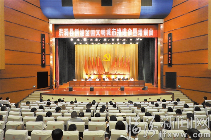 洪洞縣創(chuàng)建全國文明城市推進(jìn)會(huì)暨培訓(xùn)會(huì)會(huì)場(chǎng)。李敏 攝