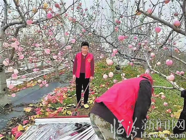 據介紹,車城鄉東趙村共有3800畝果園,在果業技術人員的指導下,目前近一半的蘋果已經搶摘完畢,并且被果商訂購。在果農蘇傲森的果園里,農戶們正在利用降雨停歇的有利時機抓緊搶收,“這8畝果園,75毫米以上果子賣到2.4元,今年大約產1萬來斤,能賣上2萬元左右。”蘇傲森說。針對著色慢的果園,趙村黨支部書記、縣財政局駐村工作隊隊長蘇瑞說:“前期我們組織了搶收前的培訓,引導果農鋪設反光膜,現在正通過線上線下積極對接終端市場,爭取蘋果紅一批采一批銷售一批,提高果農收益。”
