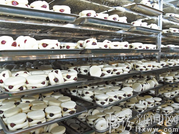 步入公司,只見10多個車間整齊劃一,依次排開。原料車間、配料間、預處理間、成型間、餳發間、熟制間、冷卻間、包裝間、冷庫、物流通道……眼前的年饃生產基地儼然一座現代化企業,一箱箱年饃層層疊疊堆放,仿佛走進了“年饃的世界”。
