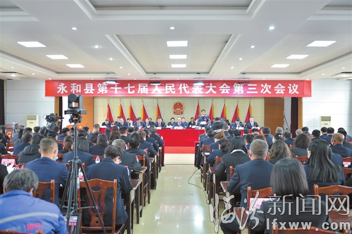 臨汾新聞網訊 3月28日上午,永和縣第十七屆人民代表大會第三次會議召開第四次全體會議。在圓滿完成各項議程后,大會勝利閉幕。縣委書記高永賢出席會議并講話。會議由縣人大常委會主任馬連青主持。高永賢、楊景寧、胡國華、馬連青、宋新亮、趙惠明、劉永勝、馮建華、任清平在主席臺前排就坐。本次會議應出席代表154人,實出席代表139人,符合法定人數。