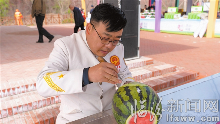 浮山手藝人衛(wèi)興安在西瓜上雕花
