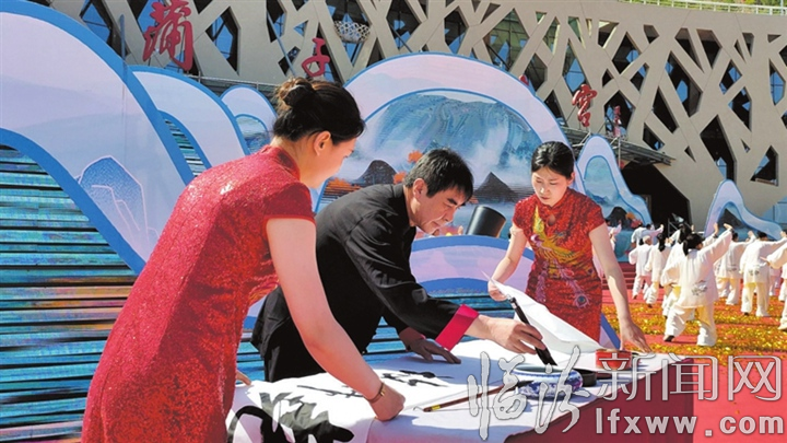 以山為骨,以水為脈,以城塑形,以園靚城,以文鑄魂。音樂小品《錦繡蒲縣》以外地人到蒲縣旅游打卡的生活場景為切入點,借助生動的故事情節和演員形象的表演,展示了蒲縣這座小縣城方方面面的更新變化;在太極非遺《康養蒲縣》的表演中,參演人員個個精神飽滿,精彩的表演感染著現場的每一位觀眾。在他們的身后,由剪紙藝術家賈四貴、書法家邢安嶺現場創作的藝術作品,贏得了觀眾的一片掌聲。