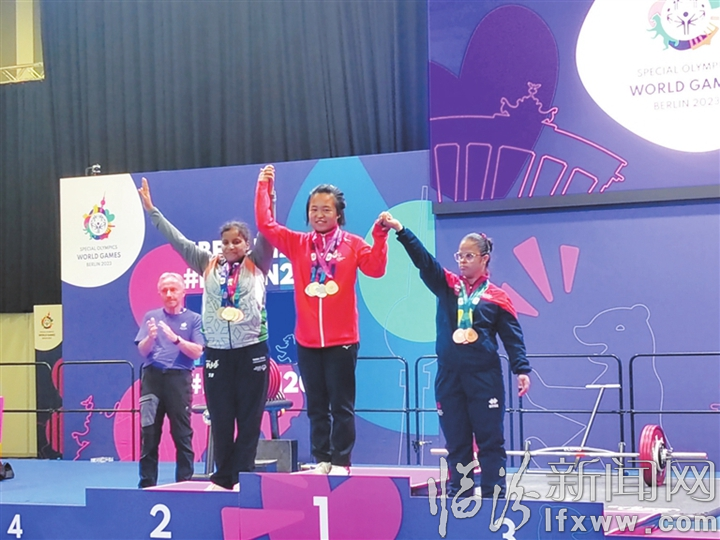身材嬌小的李若嘉,集訓時因戶外紫外線照射發生皮膚過敏,大拇指又在訓練中不小心被擠傷,她不懼傷痛,迎難而上,一邊治療一邊堅持訓練。走上賽場,李若嘉展現出極為穩定的心理素質和臨場發揮能力,沒有出現一次犯規和失誤,深蹲和提鈴都超越了平時最好成績,并創造了個人的3個“第一”——第一次參加特奧大賽、第一位出場比賽、第一個登上頒獎臺。