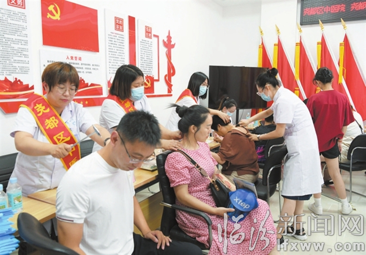 義診活動現場,醫務人員發揮專業特長,為小區居民提供了中醫體質辨識、健康咨詢、把脈開方及常見病、多發病、慢性病的診療服務;在現場為居民進行推拿、穴位貼敷、“磁圓梅針”治療,提供“耳穴壓豆”、“三伏貼”貼敷、刮痧、艾灸等中醫診療,向老百姓宣傳中醫藥知識,普及講解中醫調理的重點和預防保健養生知識,指導群眾掌握簡便易行的中醫保健方法,讓更多老百姓了解中醫、走近中醫、信任中醫。