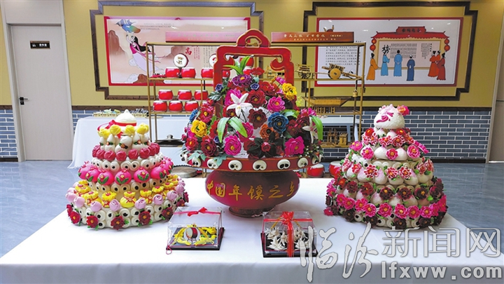 霍州市深入挖掘年饃文化,結合地方飲食習俗,研發主題雕塑、“龍重登場”等年饃文創系列產品,同時開展個性化定制服務,推出了“年饃蛋糕”“龍年”等系列花饃,精準滿足不同需求。