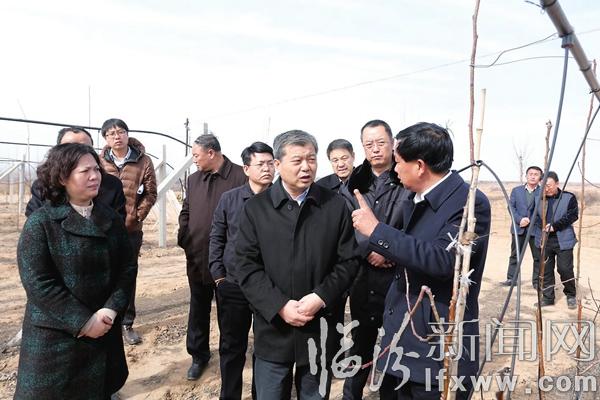 圖為羅清宇在隰縣黃土鎮調研玉露香梨示范園區建設情況。記者 鄭遠飛 攝