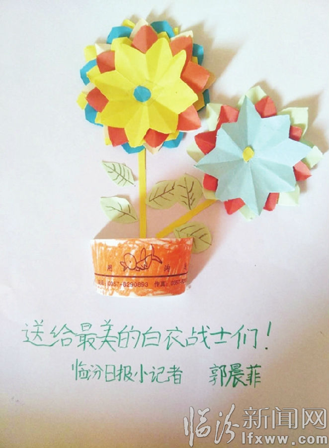 “今天,我做了一朵‘希望’的小花,送給白衣戰士,我也在心中暗暗告誡自己:向他們致敬,好好學習,成為他們,守護家園。”小記者趙璟睿活動結束后,在自己的作文中這樣寫道。