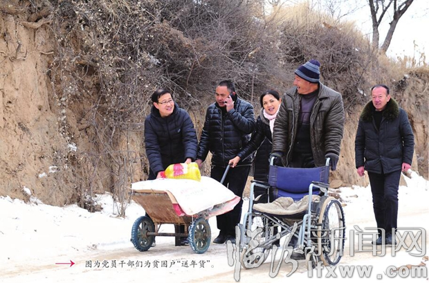 1月18日,農行臨汾分行25名結對幫扶的黨員干部踏著積雪,冒著嚴寒,帶著黨的十九大“精神食糧”、豐盛的“年貨”和幫扶資金來到了永和縣桑壁鎮東索基村開展“四送”到村入戶走“親戚”活動。