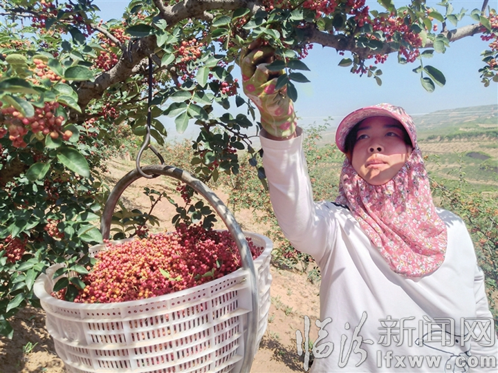 臨汾新聞網訊 秋天到了,吉縣柏山寺鄉的花椒成熟了,空氣中彌漫著花椒的香味,山坡溝旁處處有椒農采摘的身影,一派豐收的景象。圖為黑秀村村民正在采摘成熟的花椒。