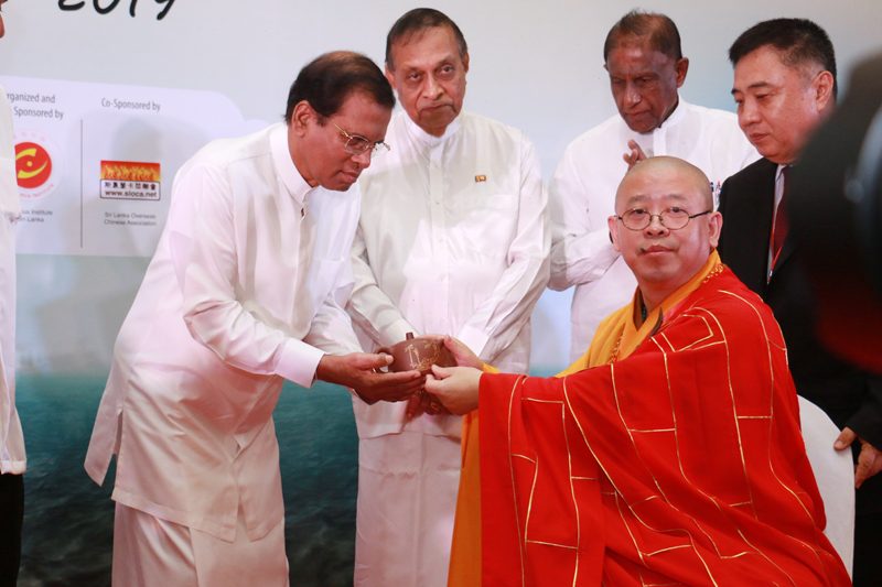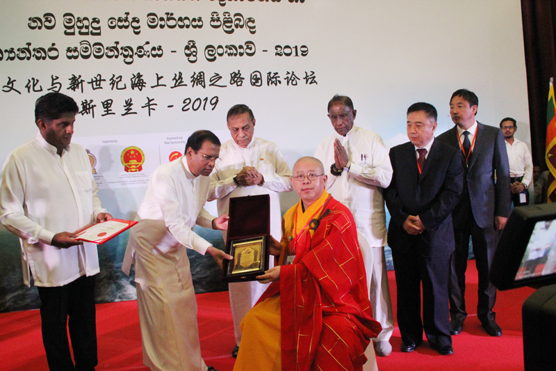 上圖: 斯里蘭卡總統(tǒng)西里塞納先生為中國(guó)佛教協(xié)會(huì)頒獎(jiǎng)(釋純一副會(huì)長(zhǎng))