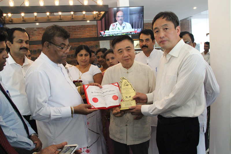上圖: 斯里蘭卡總統(tǒng)西里塞納先生為北京靈光寺頒獎(jiǎng)(釋常藏法師)