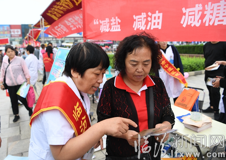 在臨汾市“三減三健”減鹽科普宣傳活動上,臨汾市中醫醫院的志愿者在為市民講解“三減三健”知識。