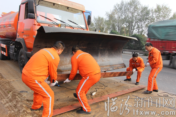 臨汾新聞網訊(記者 任杰)11月8日,山西交控集團臨汾北高速路分公司襄汾路產維護站聯合高速交警、路政大隊、信息監控中心等相關部門,在京昆高速臨侯路段趙康樞紐處開展冬季除雪防滑應急處置演練。