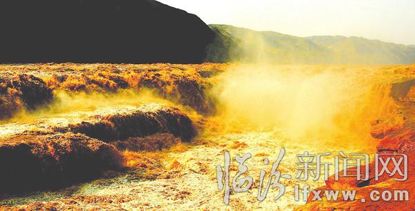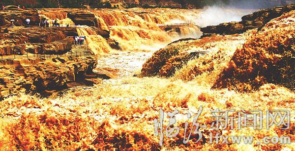 世界第一大黃色瀑布——壺口瀑布地處山西省吉縣城西北25公里處的晉陜峽谷之中,因其氣勢磅礴而享譽中外。萬里黃河流經此地,水面由300米寬乍縮為50余米,飛流直下,跌入落差30多米深的石槽中,形如巨壺注水,故名“壺口”。