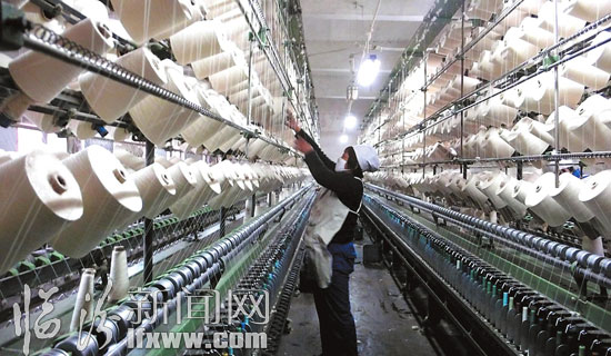 侯馬市雅峰紡織制衣公司車間內,員工們正在嫻熟的操作紡織機。據了解,自去年以來,該企業積極吸納100名下崗職工和周邊鄉村剩余勞動力就業,幫助他們增加收入。 馮文芳 攝