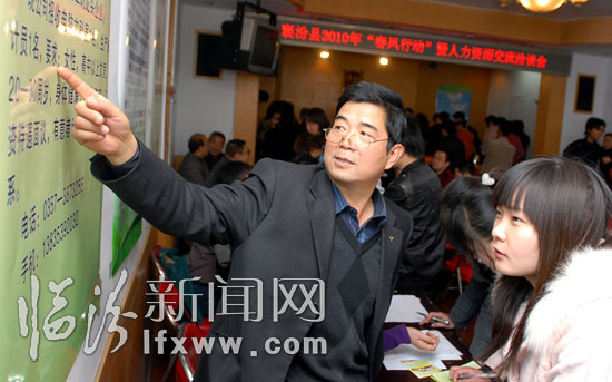 臨汾新聞網訊 3月15日,求職者在襄汾縣“春風行動”暨人力資源交流洽談會上了解用工信息。當日,襄汾縣舉辦“春風行動”暨人力資源交流洽談會,20余家用工單位提供制造、冶煉、服裝加工、裝卸等1000余個崗位,吸引了大量求職者前來應聘。 記者 閆銳鵬 攝