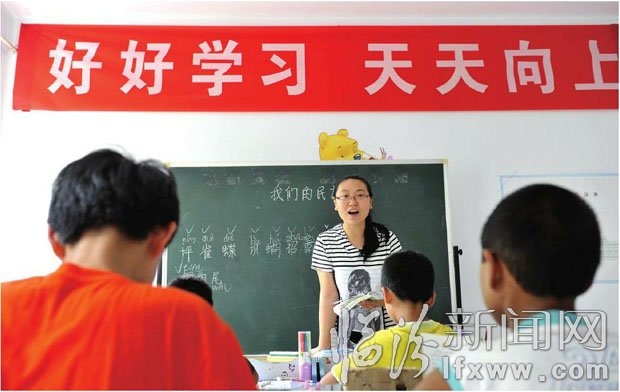 9月2日,在市紅絲帶學校,老師段盈盈在為孩子們上語文課。