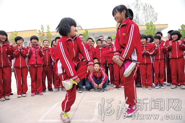 近日,在襄汾縣大鄧初中,學生們正在課間活動時間做“頂拐”游戲。該校在學生體育活動中結合實際情況,把民間體育和傳統體育融入到體育教學中,開展了頂拐、武術等活動,讓同學們以健康的體魄投入到學習中去。 本報記者閆銳鵬攝