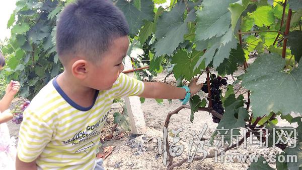 臨汾新聞網訊 眼下正是吃葡萄的好時節,周末不少家長朋友帶著孩子去葡萄基地采摘葡萄,一家人不僅能吃到新鮮的水果,還能享受親子之樂。圖為一位小朋友正伸手去摘他“看中”的一串葡萄。記者 白潔攝