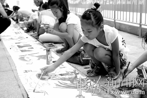 在浮山縣文體廣場舉辦的少兒繪畫比賽中,兒童們用他們天馬行空的想像力和靈巧的畫筆還原心中的抗戰英雄。崔建華攝
