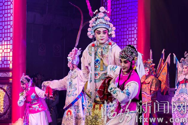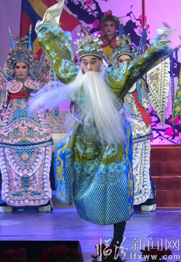 戲曲晚會在舞蹈戲歌串燒《梨園報春》《中華文明頌》中拉開帷幕,其中經典蒲劇清唱《龍虎斗》《土炕上的女人》選段,以及地方小戲聯唱洪洞道情《十八相送》、曲沃碗碗腔《游春》、翼城琴劇《化蝶》等精彩的戲曲表演,贏得現場觀眾的陣陣掌聲。尤其是經典蒲劇表演《打金枝》片段,及經典眉戶表演唱《屠夫狀元》《焦裕祿》等片段表演,更是把晚會推向了高潮,晚會在水袖、掛畫、帽翅等蒲劇技巧精彩展示中結束。