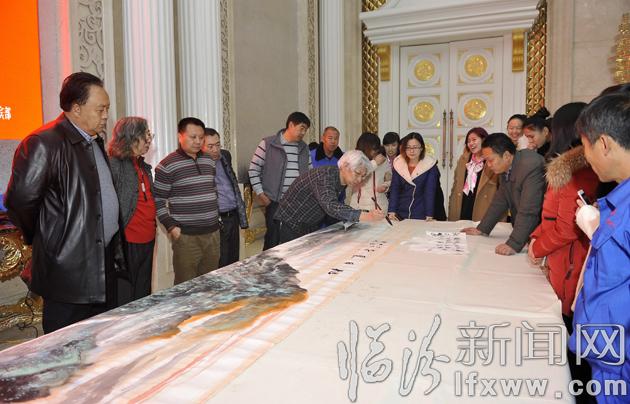 1月2日,在我市華堯集團,來自北京湖社畫會的書畫家在現場創作書畫作品。當日,山西華堯集團舉行了一場特殊的迎新春團拜會,邀請了北京湖社畫會的10余名書畫家和華堯集團600余名員工共慶新年,活動現場,書畫家結合臨汾的豐厚歷史底蘊,現場創作了巨幅山水畫卷,并為員工書寫了新年春聯,華堯集團的員工也自編自導了舞蹈、魔術以及小品等精彩的文藝節目,在濃濃的書香氣氛中,喜迎新春的到來。