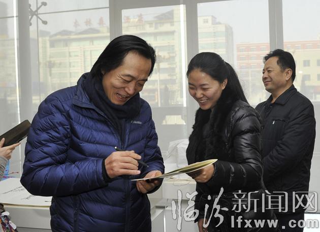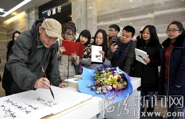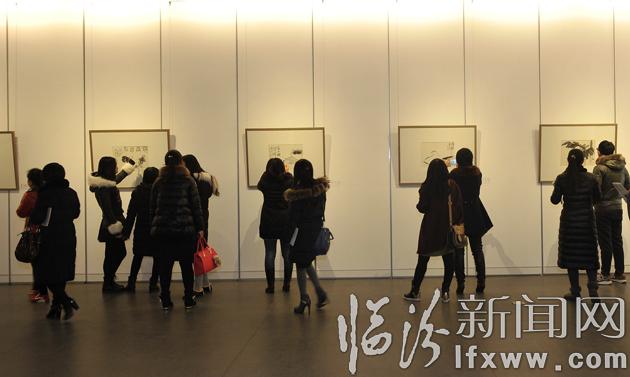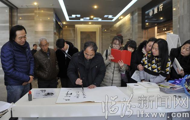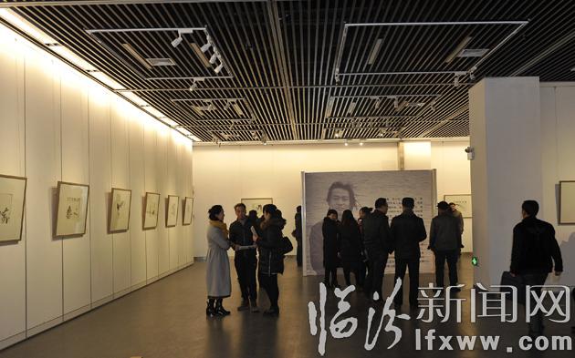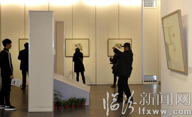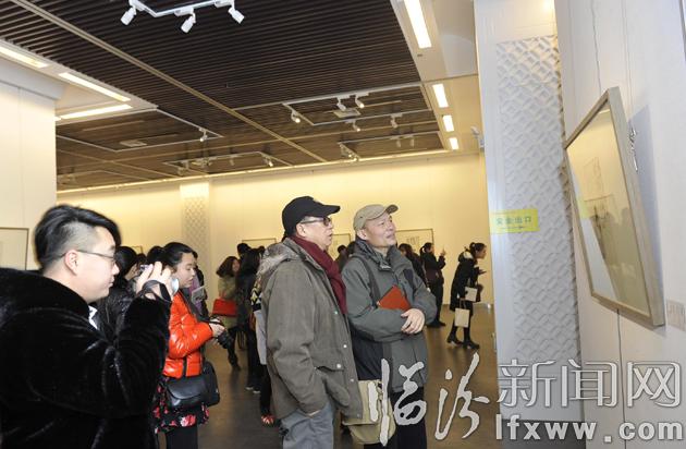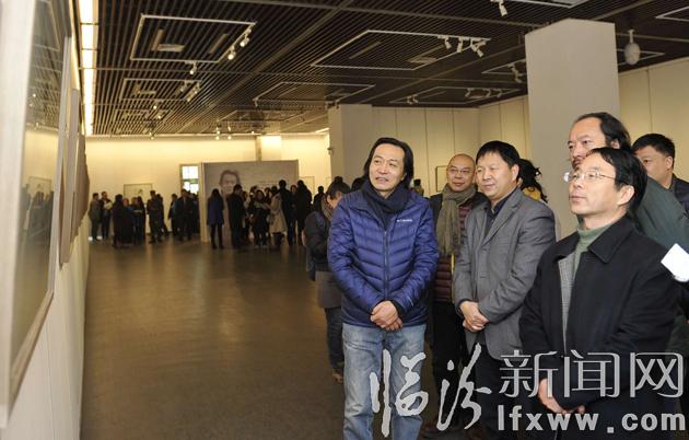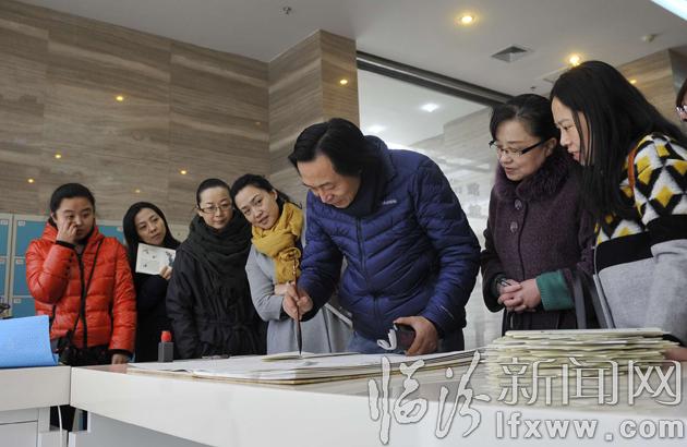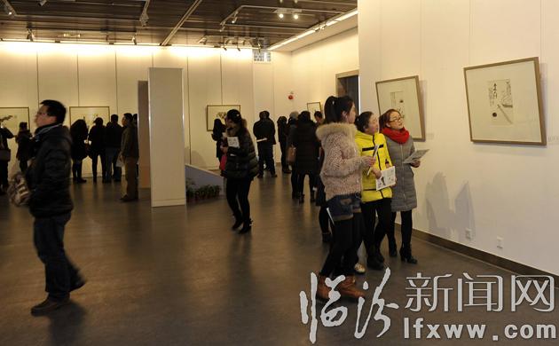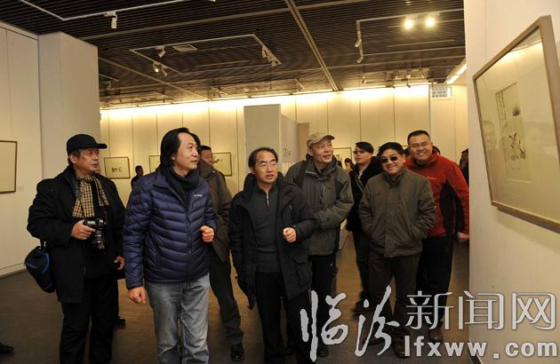 2015年12月29日,山西師范大學美術學院院長李曉庵(左二)在為書畫愛好者介紹畫展情況。當日,主題為“淡墨素心”李曉庵中國畫小品展在晉城美術館舉辦,此次展覽共展出50余幅水墨淡雅的小品佳作,皆為李曉庵先生近年來創(chuàng)作的部分花鳥小品。