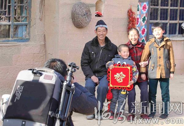 永和縣閣底鄉奇奇里村地處永和縣西南部,是革命老區,地理位置偏僻,經濟條件較為薄弱,村民靠天吃飯,是典型的農業貧困村,全村有4個自然村,700余口人,主導產業是紅棗、小雜糧等農副產業。“通過前期的走訪,調查發現,村民的精神文化生活匱乏,拍攝一張記錄幸福的全家福自然也成了他們心中最為開心的事,經過溝通后,我們與臨汾日報社決定共同開展送‘福’到家園,山區百姓團圓夢公益活動,也是創新形式的文化扶貧,更是一次傳遞幸福的公益行動。”中國工商銀行臨汾分行的志愿者代表段云告訴記者。