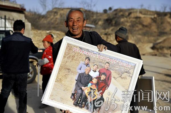 臨汾新聞網訊 用影像記錄親情,用照片溫暖人心,農歷臘月二十七,永和縣閣底鄉奇奇里村的村民們收到了充滿著愛心的一幅幅全家福,得知志愿者們要過來送照片了,鄉親們早早就聚在村委會的大院里等待著,和第一次到奇奇里村一樣,村民們拿出了自家的紅棗、核桃,用農村那份特有的熱情招待遠道而來的客人。