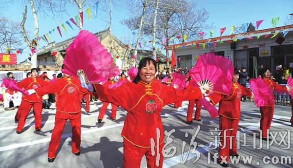 圖③為堯都區縣底鎮黃寺頭村的村民表演扭秧歌。